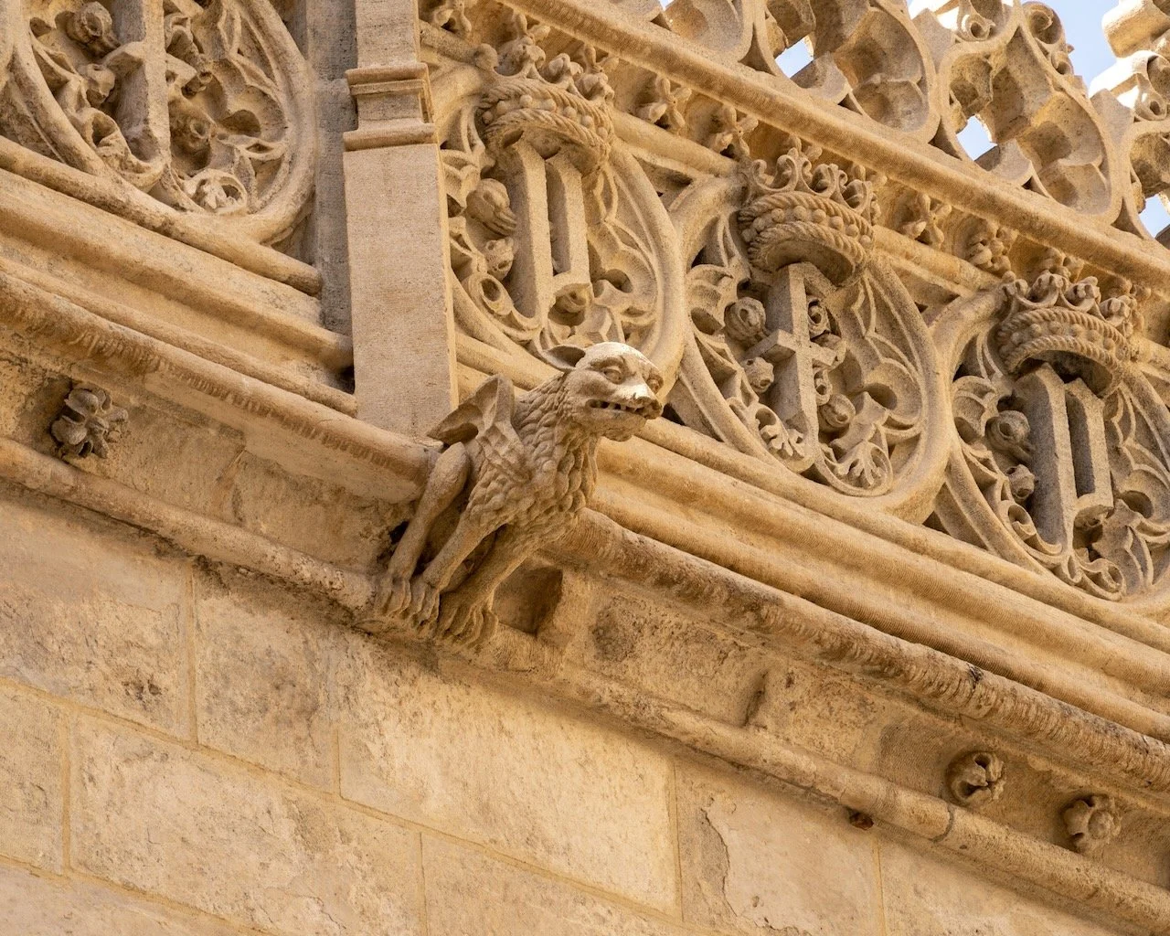 You can find this on the Silk Exchange building. I took this photo on our first trip to Valencia after moving to Spain, the second time ever. Many gargoyles are holding things in their hands.