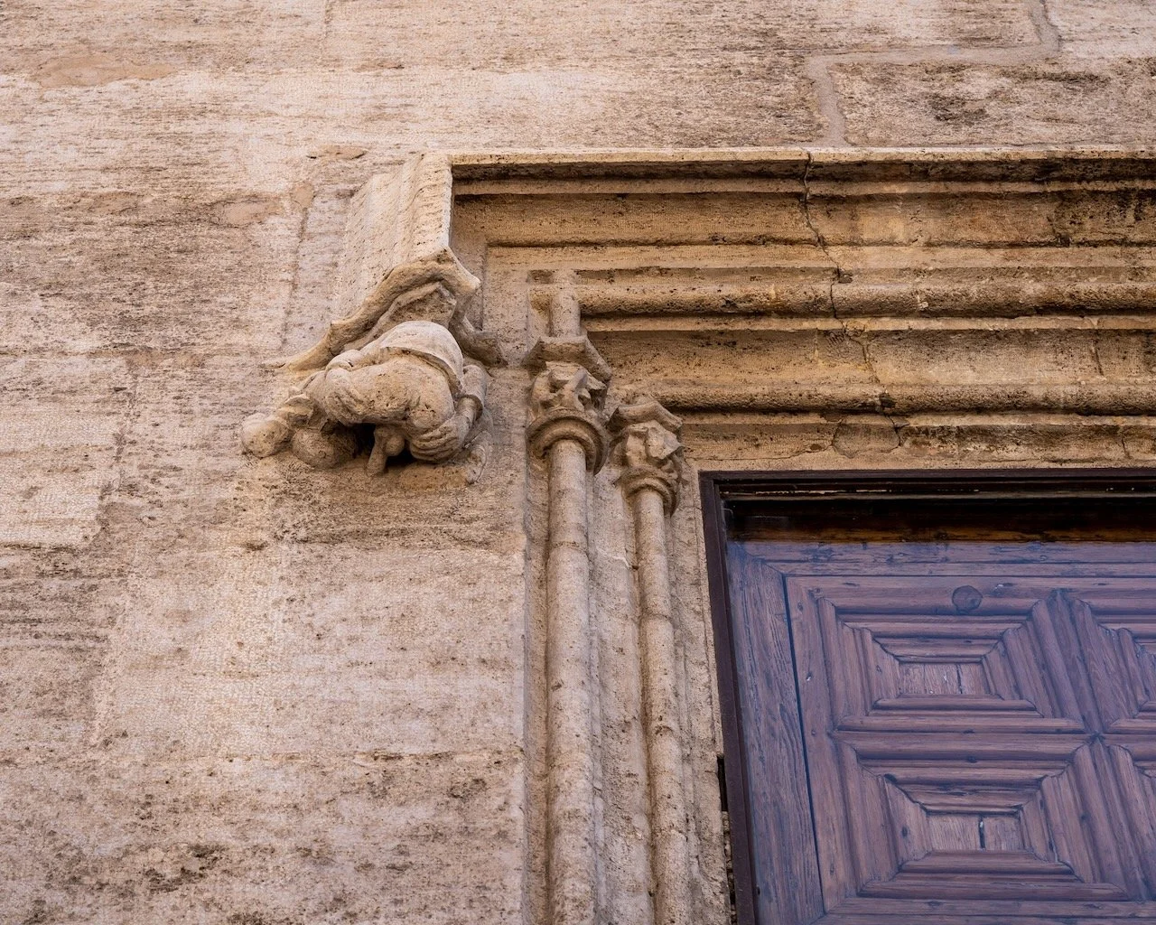 Regresamos a Valencia con este hombre travieso. ¿Qué le está haciendo al edificio? Este desviado está cerca del mercado central. No estoy seguro si también es la Lonja. Muchas gárgolas y quimeras aparecen haciendo cosas malas.