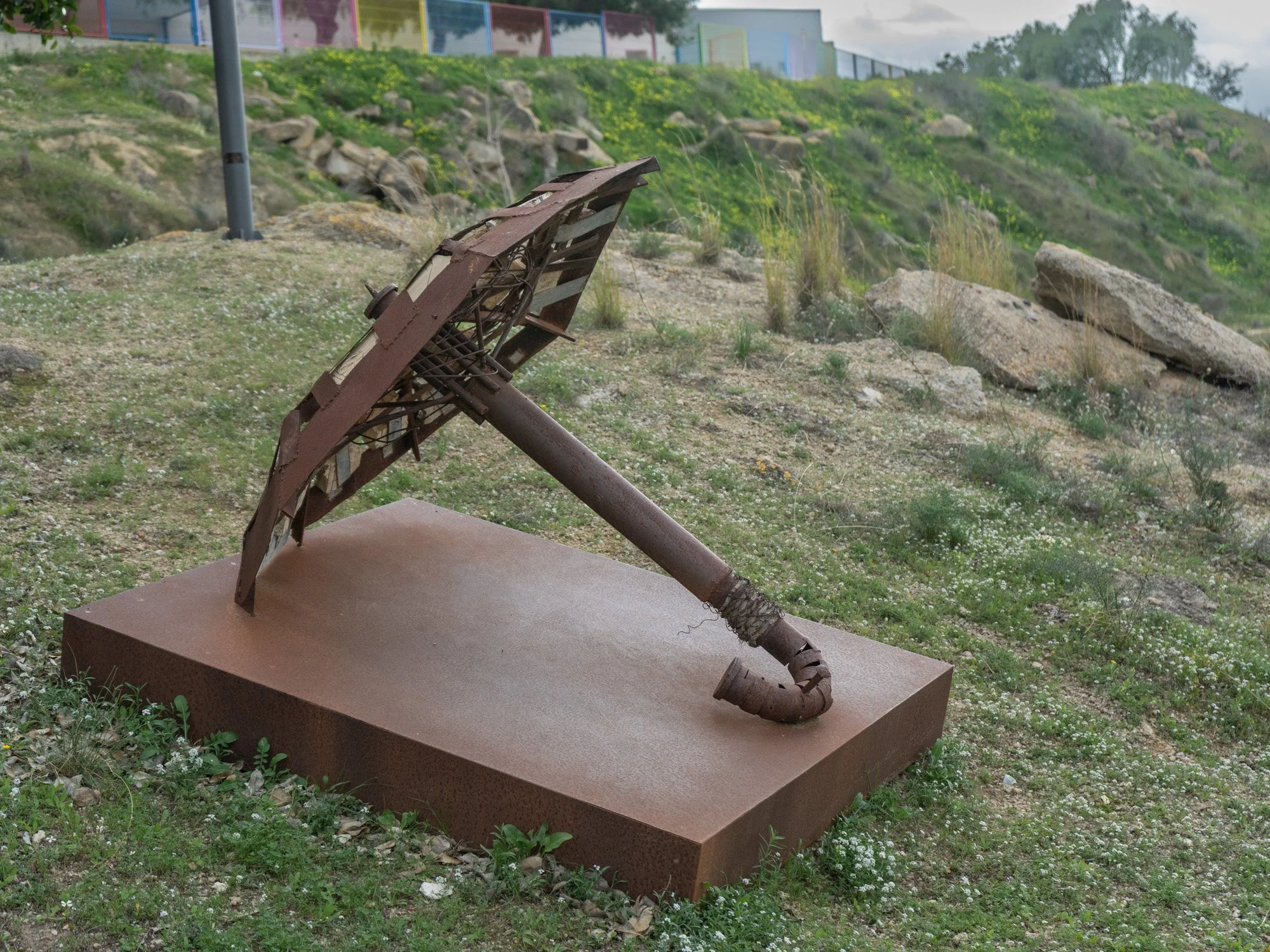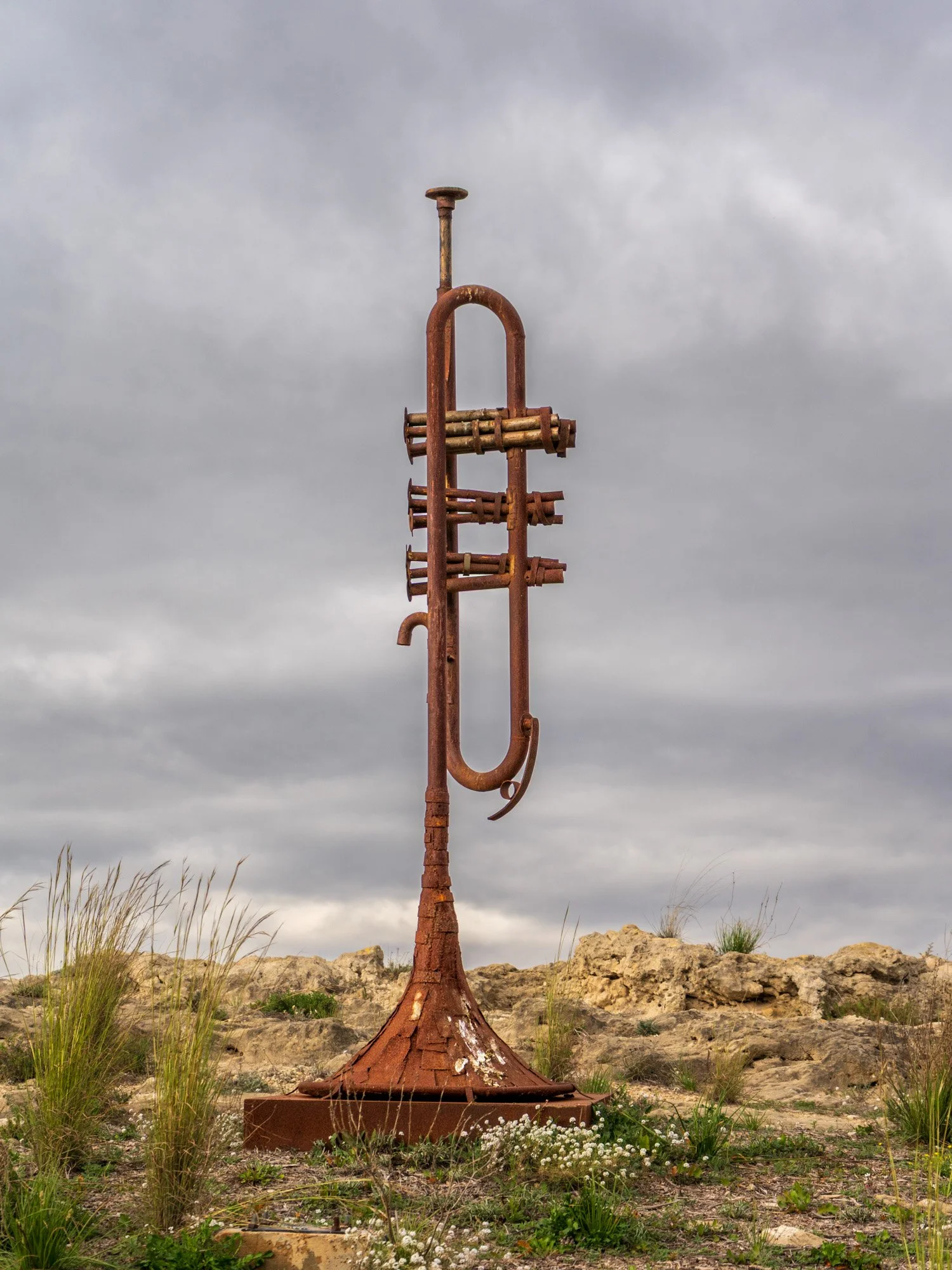 A continuación, subimos una colina y encontramos un parque con muchas esculturas metálicas, incluyendo instrumentos de jazz. Gigi estuvo a su lado con entusiasmo.